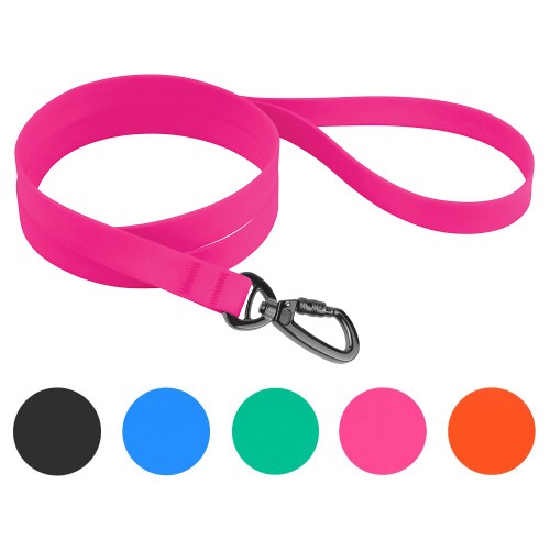 Погляньте на нашу нову серію водонепроникних повідців для собак у яскравих кольорах! Водонепроникні повідці для собак зроблені з нейлонової стрічки, покритої ПВХ (полівінілхлоридом). Цей матеріал має попит завдяки його довговічності і приголомшливим водовідштовхувальним властивостям. Ще одна перевага ПВХ полягає в тому, що він зовсім не вбирає води, бруду чи запахів. Водовідштовхуючий повідець комфортний в експлуатації і для вихованця, і для господаря. Також його дуже легко мити, так як можна робити це просто під проточною водою. Більше того, водонепроникний повідець не розтягується, коли собака смикає або тягне повідець. Спробуйте та відчуйте наскільки повідець з ПВХ покриттям гарний та легкий. Цей водонепроникний повідець доступний у чорному та яскравому синьому, зеленому, оранжевому та рожевому кольорах. Водовідштовхувальні повідці для собак оснащені сталевим карабіном з чорним карбоновим покриттям, дуже міцним і не піддається іржавінню. Його довжина 3 метри дозволяє зробити дистанцію між вами та собакою комфортною для щоденних прогулянок.