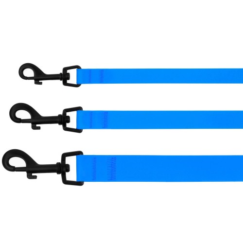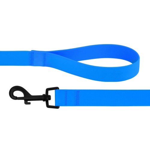 Погляньте на нашу нову серію водонепроникних повідців для собак у яскравих кольорах! Водонепроникні повідці для собак зроблені з нейлонової стрічки, покритої ПВХ (полівінілхлоридом). Цей матеріал має попит завдяки його довговічності і приголомшливим водовідштовхувальним властивостям. Ще одна перевага ПВХ полягає в тому, що він зовсім не вбирає води, бруду чи запахів. Водовідштовхуючий повідець комфортний в експлуатації і для вихованця, і для господаря. Також його дуже легко мити, так як можна робити це просто під проточною водою. Більше того, водонепроникний повідець не розтягується, коли собака смикає або тягне повідець. Спробуйте та відчуйте наскільки повідець з ПВХ покриттям гарний та легкий. Цей водонепроникний повідець доступний у чорному та яскравому блакитному, зеленому, оранжевому та рожевому кольорах. Водовідштовхувальні повідці для собак оснащені сталевим карабіном з чорним карбоновим покриттям, дуже міцним і не піддається іржавінню. Його довжина 122 або 152 сантиметри дозволяє зробити дистанцію між вами та собакою комфортною для щоденних прогулянок.