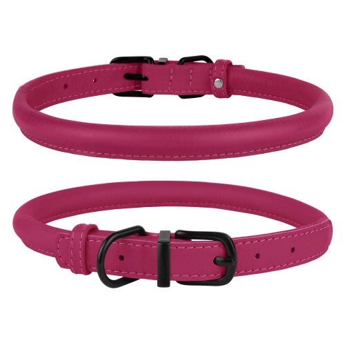 Нашийник для Собак Круглий Шкіряний BronzeDog Premium з Металевою Фурнітурою Рожевий 2XS(00317/Т)