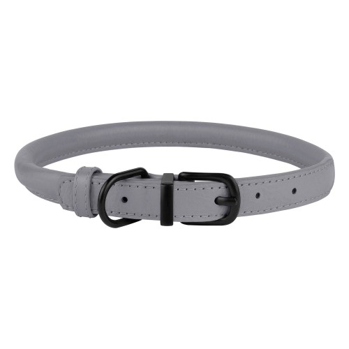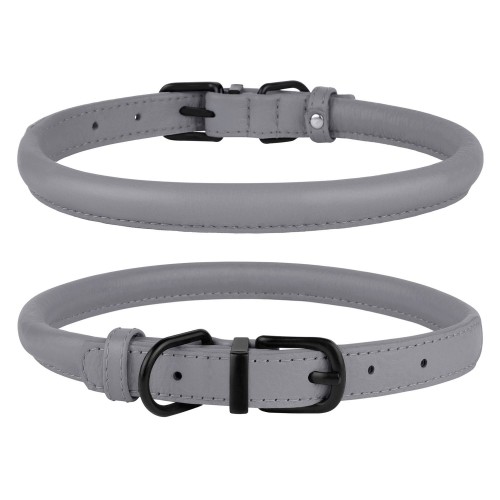 Нашийник для Собак Круглий Шкіряний BronzeDog Premium з Металевою Фурнітурою Сірий M(003411/Т)