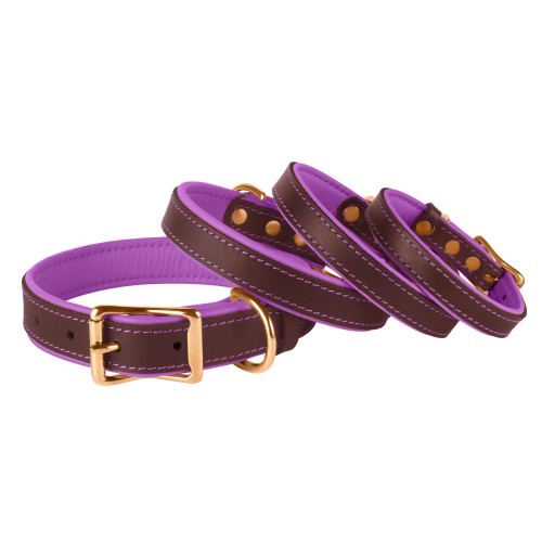 Нашийник для Собак Шкіряний BronzeDog Premium з Литою Латунною Фурнітурою та Адресником Коричнево-Фіолетовий L(62079/Т)