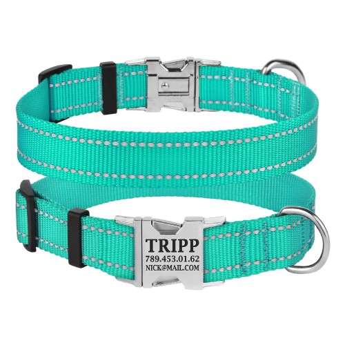 Нейлоновий нашийник зі світловідбиттям для собак ТМ BronzeDog легкий, міцний та надійний. Він виконаний із матеріалів найвищої якості. Високоміцний нейлон, з якого виготовлений нашийник, не втрачає колір під час прання і не вигоряє на сонці. Нашийник виконаний із вплетенням світловідбиваючої нитки та укомплектований міцною металевою пряжкою з можливістю нанесення гравіювання. На пряжці можна нагрівати будь-яку інформацію, наприклад: кличка домашньої тварини, контактні дані, адреса, номер мікрочіпа тощо. На нашийнику розміру S бажано розміщувати не більше 2 рядків гравіювання. Текст наноситься за допомогою лазера, тому з часом він не стирається і не тьмяніє. Цей нашийник м'який на дотик, гнучкий, не боїться води, практичний і невибагливий у догляді.