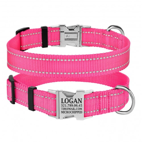 Нашийник для Собак BronzeDog Active Нейлоновий зі Світловідбиттям та Металевою Пряжкою Рожевий M(33/1306/Т)