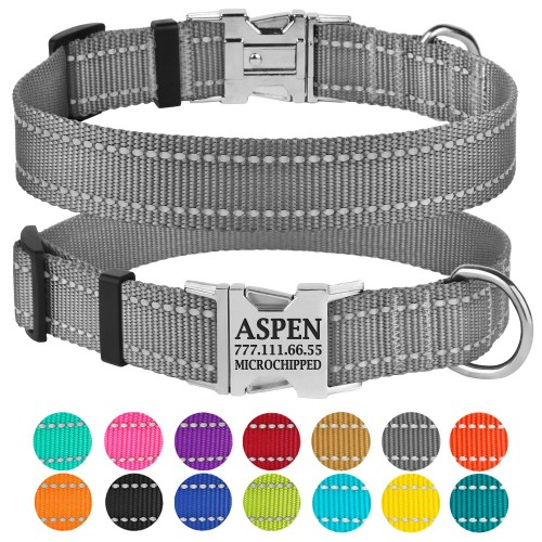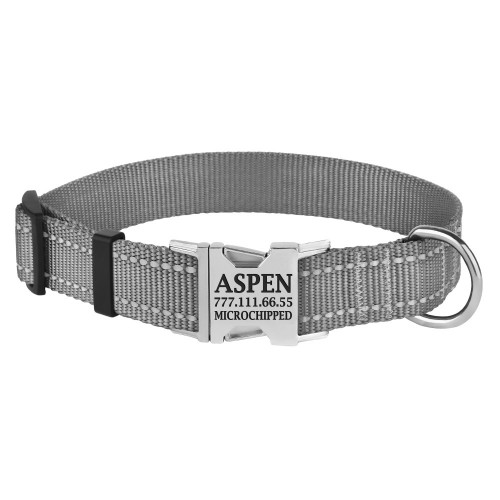 Нейлоновий нашийник зі світловідбиттям для собак ТМ BronzeDog легкий, міцний та надійний. Він виконаний із матеріалів найвищої якості. Високоміцний нейлон, з якого виготовлений нашийник, не втрачає колір під час прання і не вигоряє на сонці. Нашийник виконаний із вплетенням світловідбиваючої нитки та укомплектований міцною металевою пряжкою з можливістю нанесення гравіювання. На пряжці можна нагрівати будь-яку інформацію, наприклад: кличка домашньої тварини, контактні дані, адреса, номер мікрочіпа тощо. На нашийнику розміру S бажано розміщувати не більше 2 рядків гравіювання. Текст наноситься за допомогою лазера, тому з часом він не стирається і не тьмяніє. Цей нашийник м'який на дотик, гнучкий, не боїться води, практичний і невибагливий у догляді.