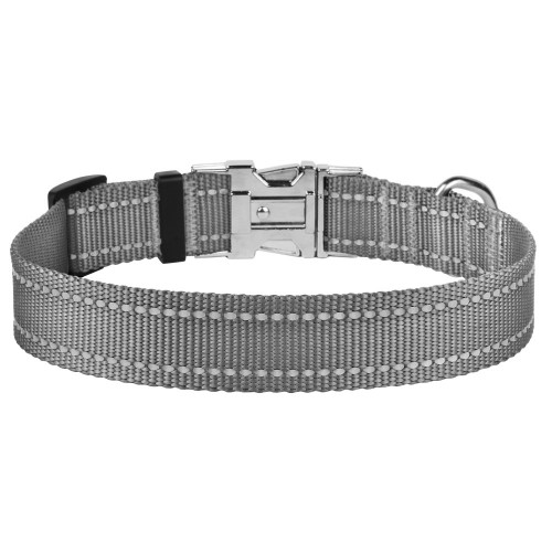 Нашийник для Собак BronzeDog Active Нейлоновий зі Світловідбиттям та Металевою Пряжкою Сірий S(32/1311/Т)