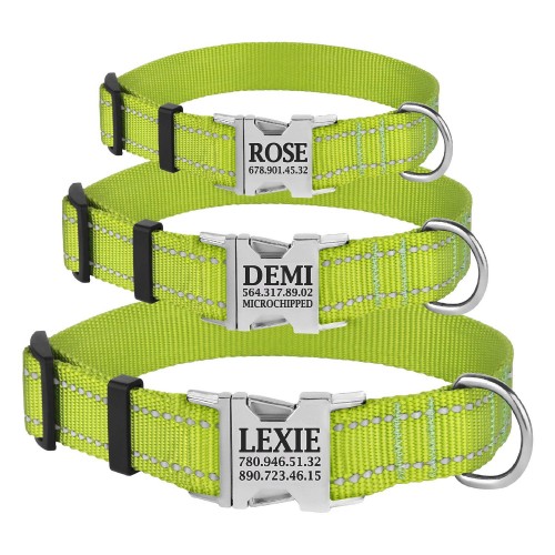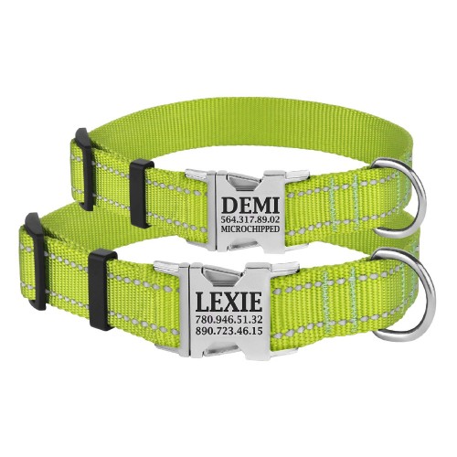 Нейлоновий нашийник зі світловідбиттям для собак ТМ BronzeDog легкий, міцний та надійний. Він виконаний із матеріалів найвищої якості. Високоміцний нейлон, з якого виготовлений нашийник, не втрачає колір при пранні та не вигоряє на сонці. Нашийник виконаний із вплетенням світловідбиваючої нитки та укомплектований міцною металевою пряжкою з можливістю нанесення гравіювання. На пряжці можна нагрівати будь-яку інформацію, наприклад: кличка домашньої тварини, контактні дані, адреса, номер мікрочіпа тощо. На нашийнику розміру S бажано розміщувати не більше 2 рядків гравіювання. Текст наноситься за допомогою лазера, тому з часом він не стирається і не тьмяніє. Цей нашийник м'який на дотик, гнучкий, не боїться води, практичний і невибагливий у догляді.