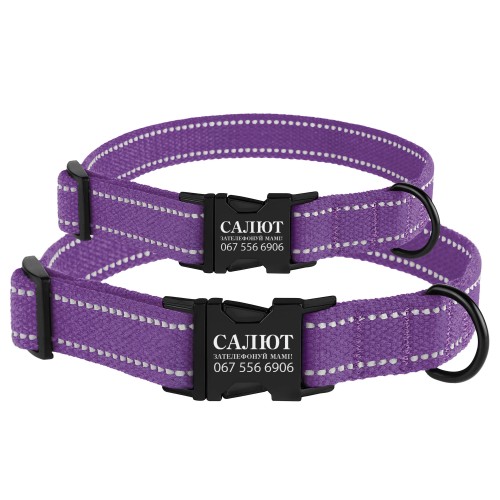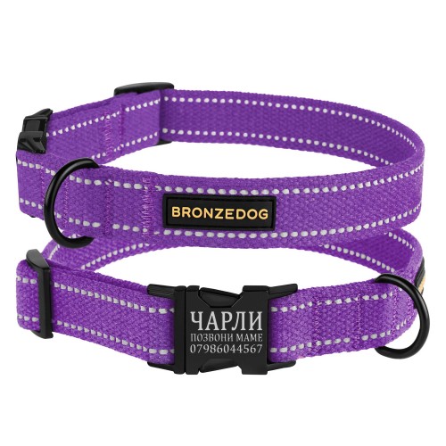 Нашийник для Собак BronzeDog Active Нейлоновий зі Світловідбиттям та Металевою Пряжкою Фіолетовий M(33/1307/Т)