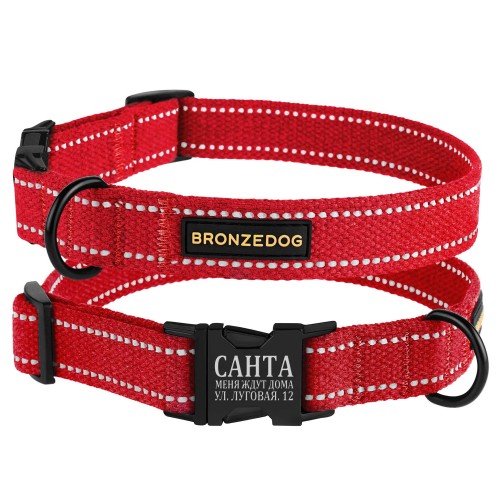 Нашийник для Собак BronzeDog Active Нейлоновий зі Світловідбиттям та Металевою Пряжкою Червоний XL(38/1303/Т)