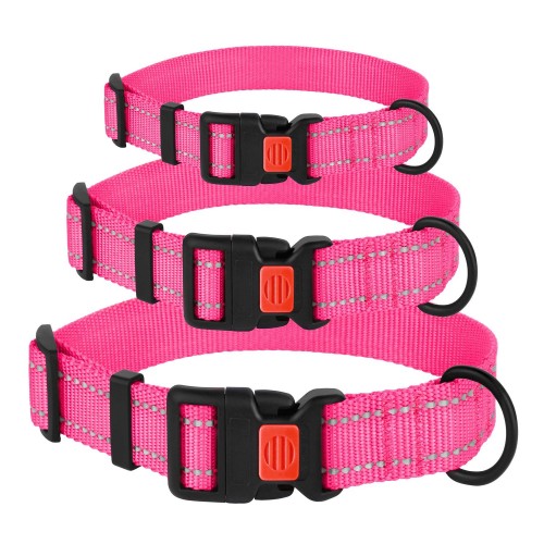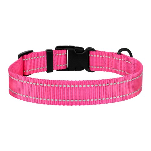 Нашийник для Собак BronzeDog Active Нейлоновий зі Світловідбиттям та Пластиковою Пряжкою Рожевий XL(53/1306/Т)
