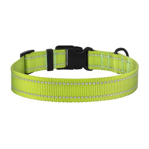 Нашийник для Собак BronzeDog Active Нейлоновий зі Світловідбиттям та Пластиковою Пряжкою Салатовий S(50/1305/Т)