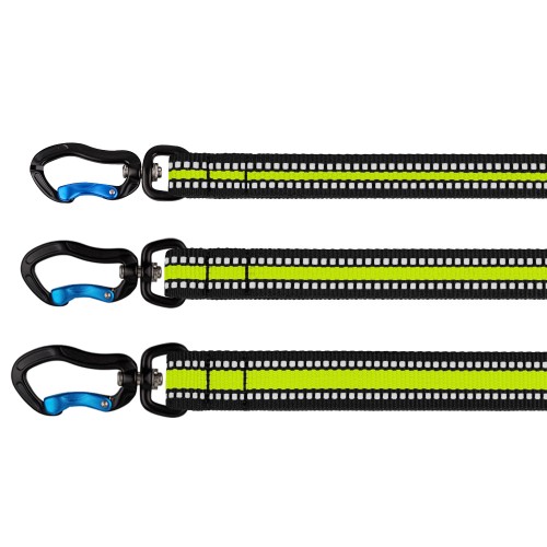 Наявність двох світловідбиваючих елементів товщиною 2 мм, в доповненні з міцним карабіном, що використовуються в повідку Barksi Mesh, робить його одним з найбезпечніших повідців як для собак, так і для їх власників, що виробляються в даний час. У конструктиві повідця передбачена петля-хват біля карабіна для утримання собаки поруч за потреби: при переході автомобільної дороги, скорочення дистанції під час вигулу по відношенню до інших собак, для навчання дисципліни команди "поряд" тощо. На карабіні нанесено карбонове покриття від корозії, що забезпечує тривалий термін служби.
